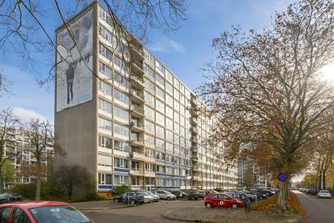 Het appartement ligt op de hoek van het gebouw, aan het einde van de galerij, geen loopverkeer dus en lekker rustig.